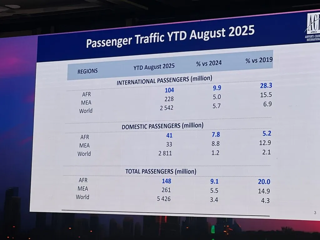 He sounded a note of confidence when detailing passenger movement across the African continent, that has seen stable growth, based on passenger traffic YTD August 2025, with a 20% increase since 2019.